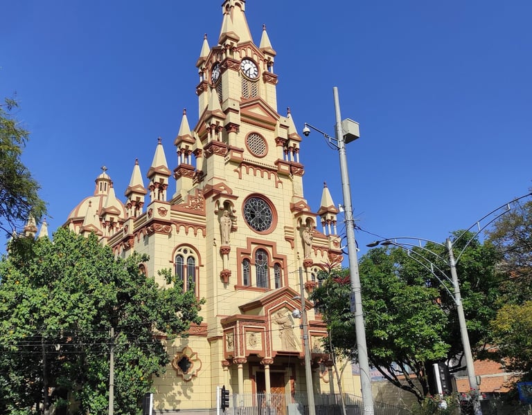 Templo San Juan Bosco, ubicada en el centro de Medellín, fue construida entre 1923 y 1930 bajo la dirección del arquitecto Juan Buscaglione. Su altar, elaborado en mármol de Carrara, fue donado por Doña Mercedes de Hernández, y el santuario a María Auxiliadora se convirtió en el primero levantado en Colombia. Con un estilo renacentista y construida en ladrillo macizo, el templo ha sido testigo de la vida espiritual y cultural de la ciudad durante casi un siglo, destacándose por su fachada simétrica, su cúpula y sus elementos arquitectónicos únicos.