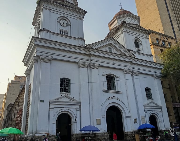 El Templo de La Candelaria, ubicado junto al Parque Berrío en el corazón de Medellín, es la parroquia más antigua de la ciudad y un referente religioso y urbano desde el siglo XVII. Su actual construcción, levantada entre 1768 y 1776 bajo el impulso de José Varón de Chávez, combina una planta basilical colonial con una fachada de estilo neoclásico. Fue catedral de la diócesis entre 1868 y 1931 y en 1970 recibió el título de Basílica Menor otorgado por el papa Pablo VI. Declarado Bien de Interés Cultural de la Nación, conserva valiosas piezas artísticas como un sagrario de plata del siglo XIX y un órgano Walker, reafirmando su papel como símbolo histórico, arquitectónico y espiritual de Medellín.
